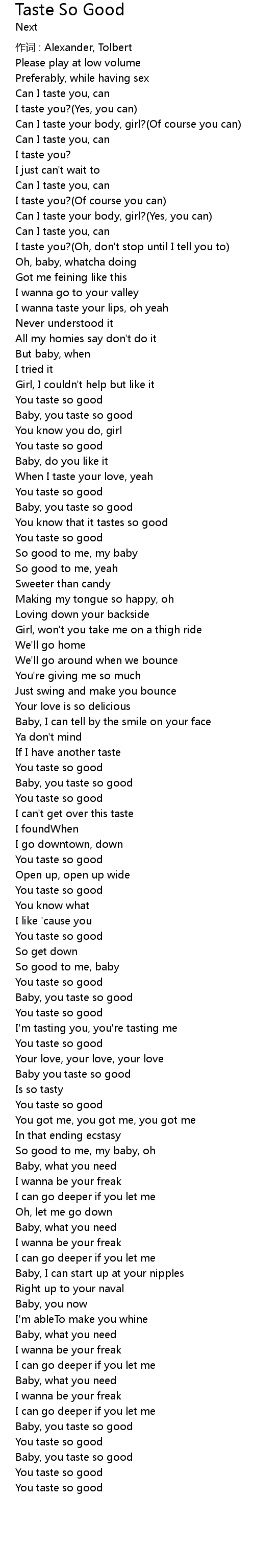 | Baby, you taste so good | |