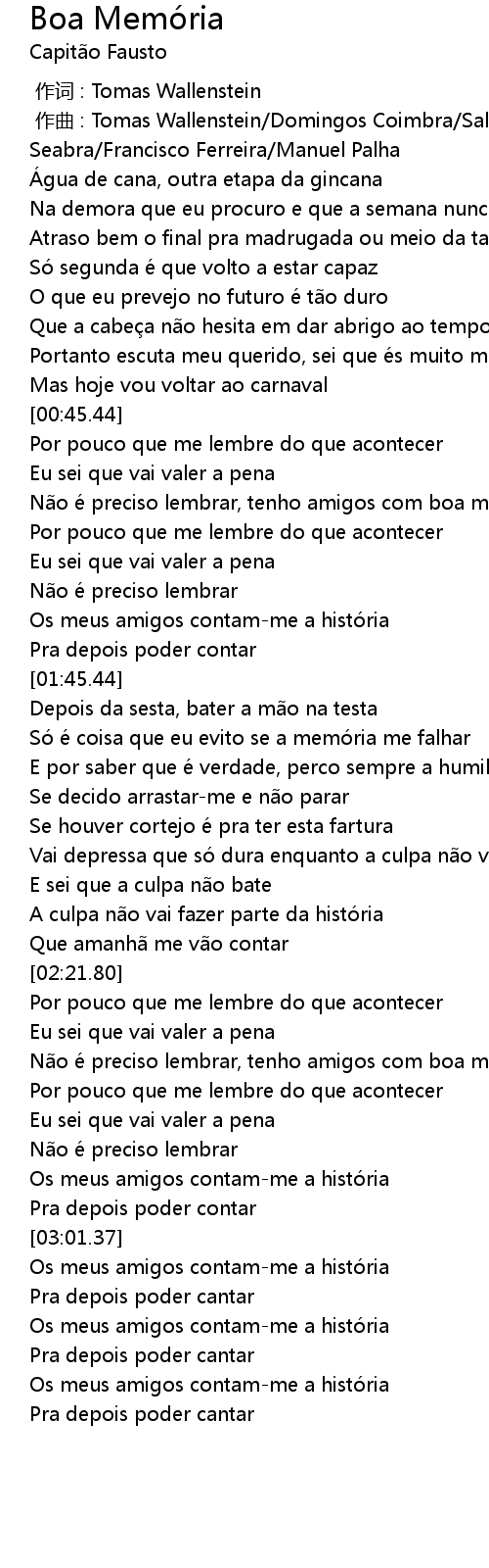 | [02:33.95] | Não é preciso lembrar, tenho amigos com boa memória |
