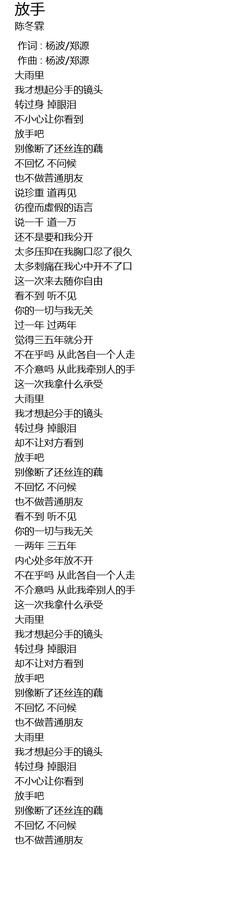 | [00:01.000] | 作曲 : 杨波/郑源 |