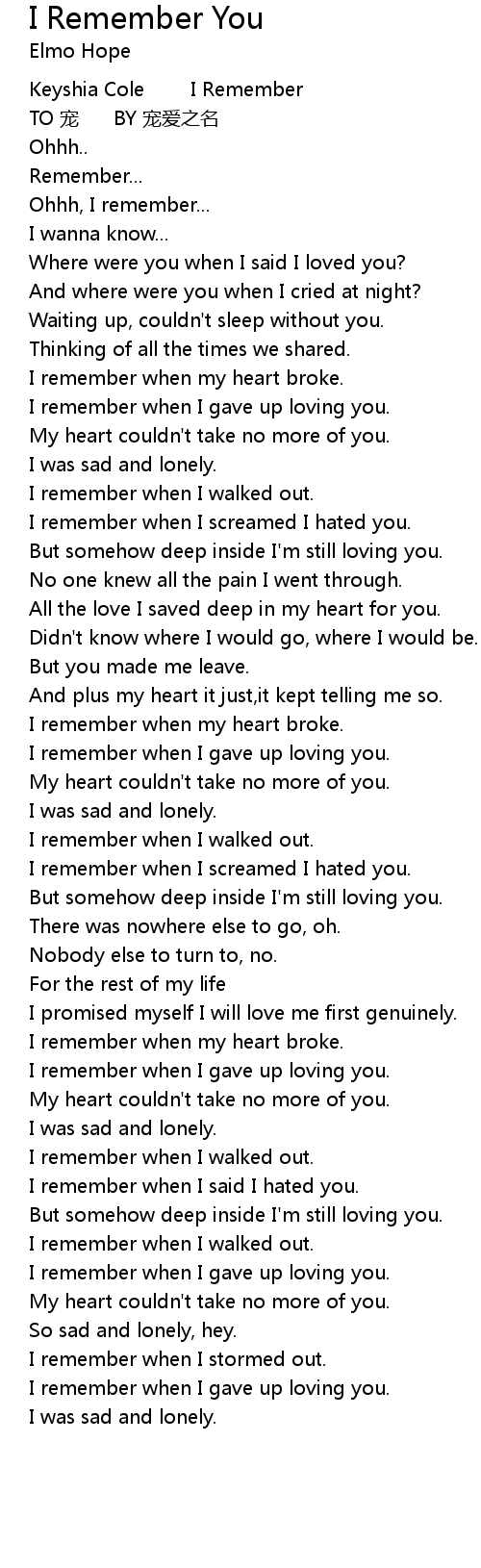 | [00:01.33] | Keyshia Cole I Remember |