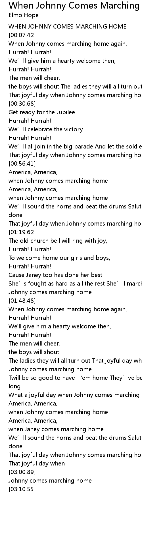 | [00:05.04] | WHEN JOHNNY COMES MARCHING HOME |