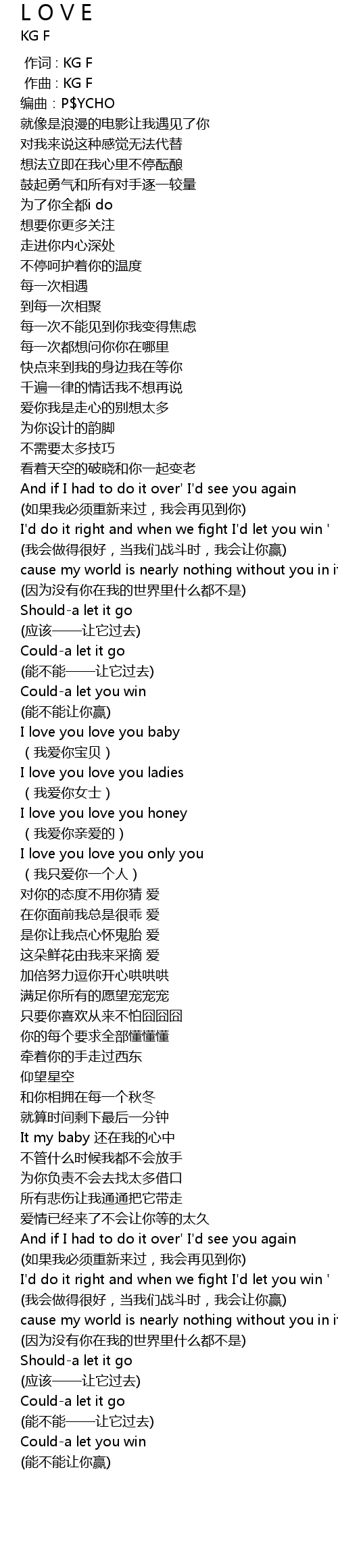 | [00:00.000] | 作词 : KG F |