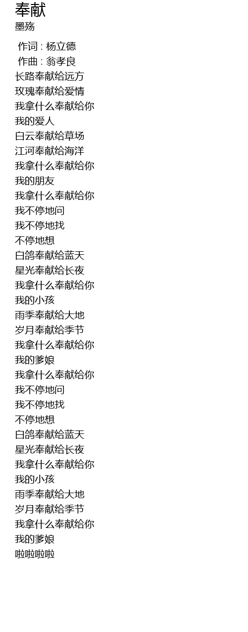 | [02:39.340] | wǒ ná shén me fèng xiàn gěi nǐ |