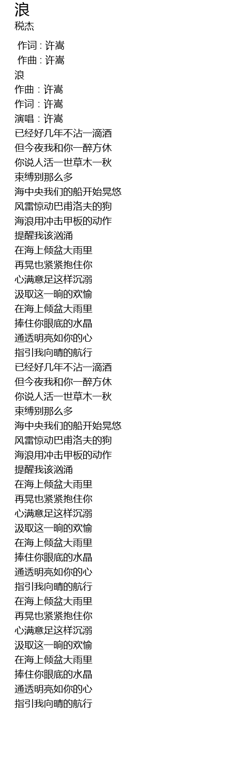 | [00:00.000] | 作词 : 许嵩 |