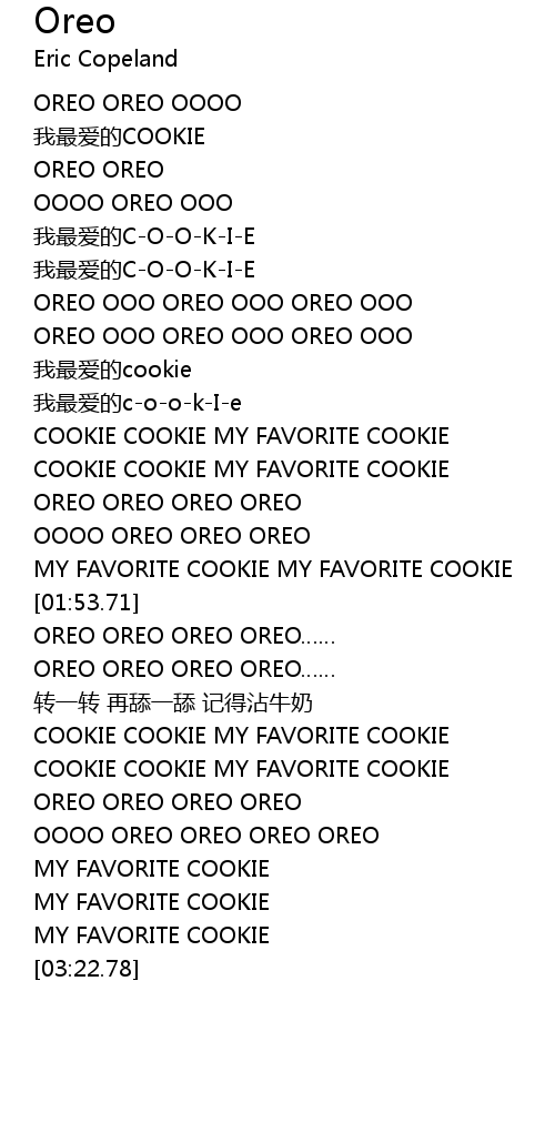 | [02:57.49] | OOOO OREO OREO OREO OREO |