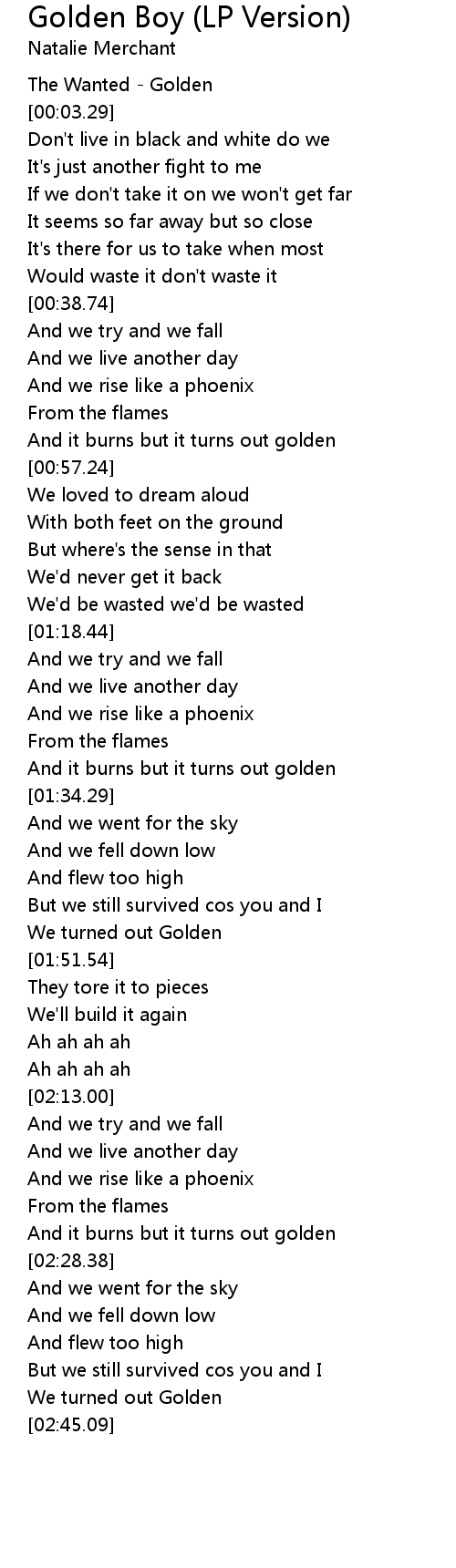 And it burns but it turns out golden |