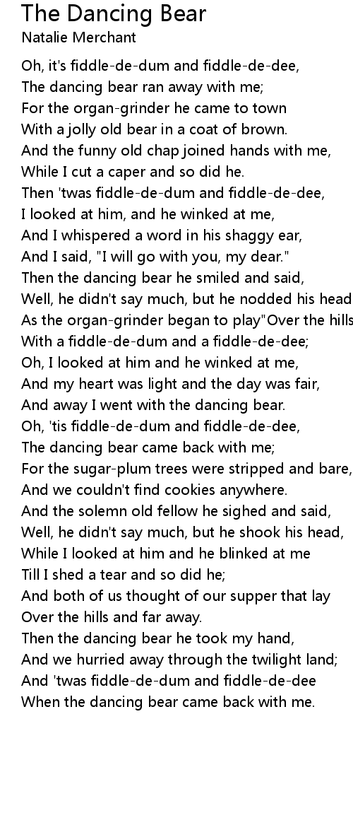 With a fiddle-de-dum and a fiddle-de-dee; |