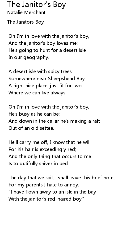 Oh I'm in love with the janitor's boy, |
