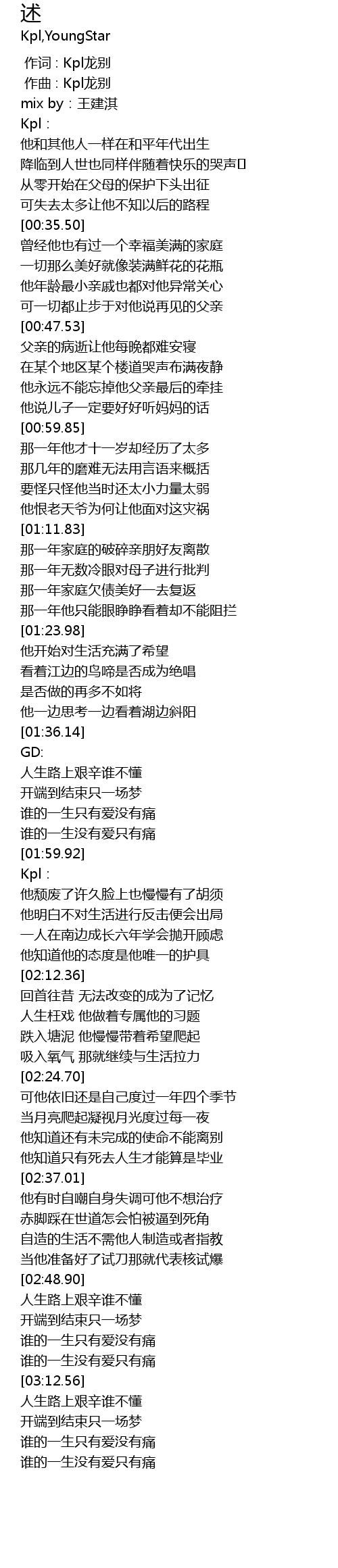 | [00:00.000] | 作词 : Kpl龙别 |