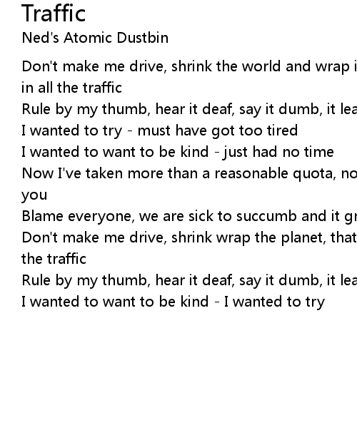 Don't make me drive, shrink the world and wrap it, that's where I shat it, lost in all the traffic |
