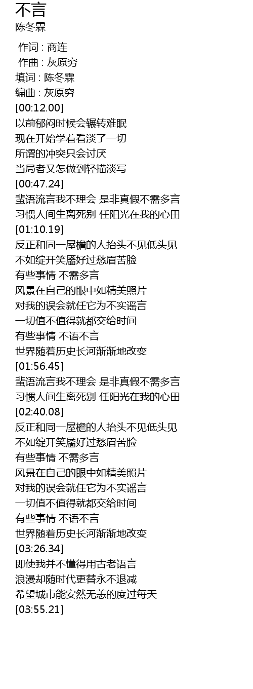 | [00:49.70] | 蜚语流言我不理会 是非真假不需多言 |