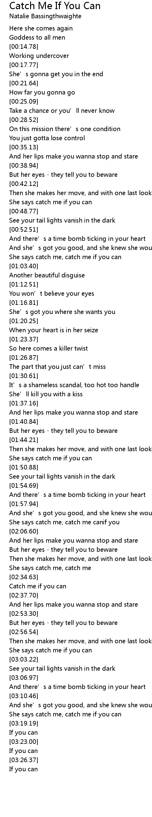 | [03:00.91] | She says catch me if you can |