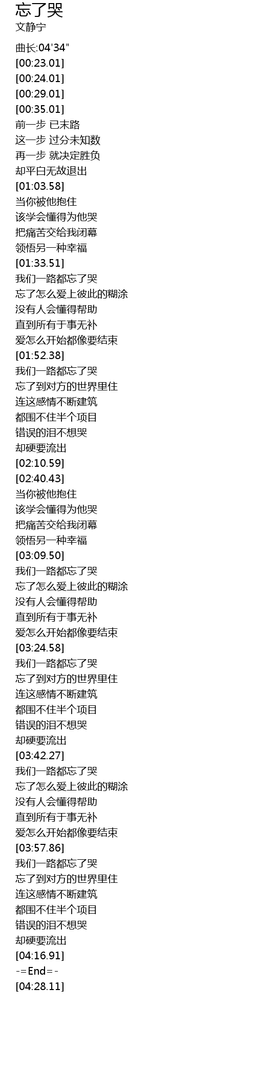 | [00:20.01] | 曲长:04'34" |