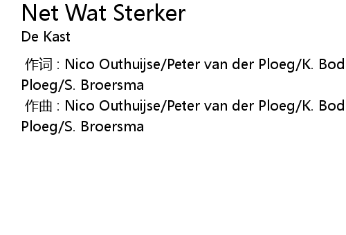| [00:00.000] | 作词 : Nico Outhuijse/Peter van der Ploeg/K. Bode/Syb van der Ploeg/S. Broersma |