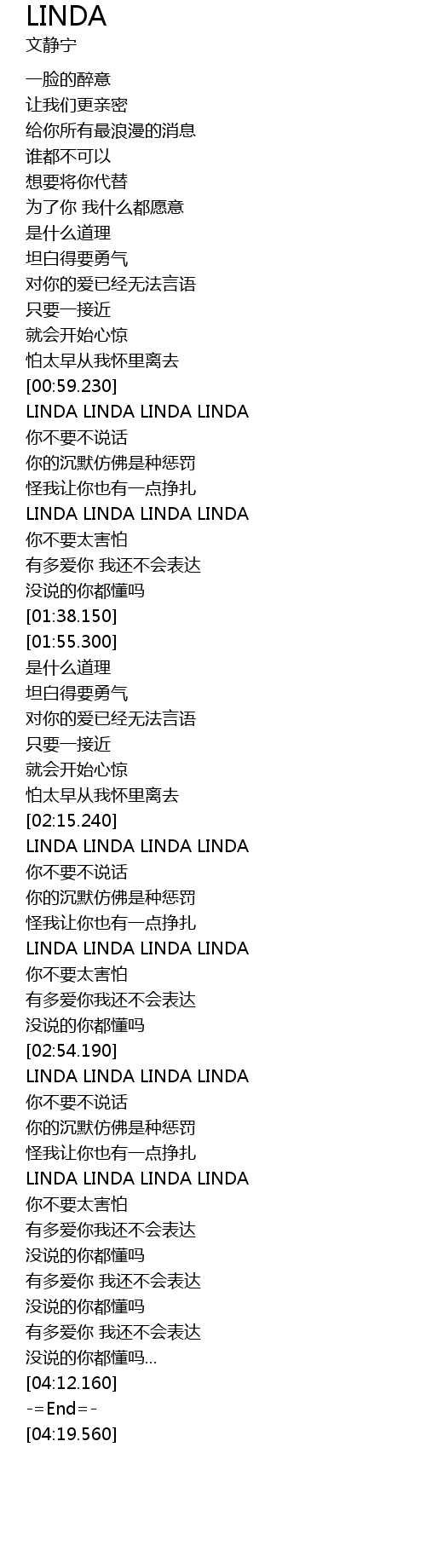 | [02:16.110] | LINDA LINDA LINDA LINDA |