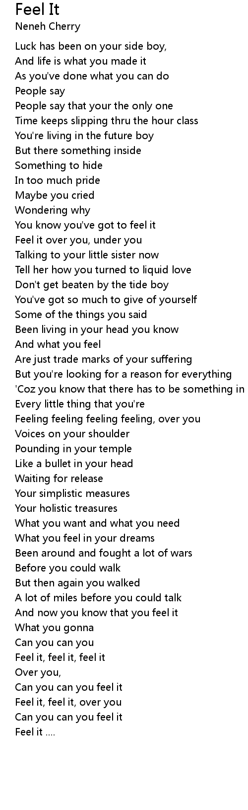 Feel it, feel it, feel it |