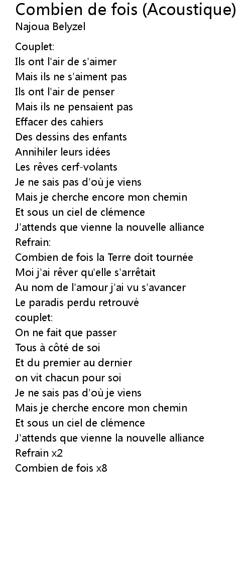 | Song | Combien de fois (Acoustique) |