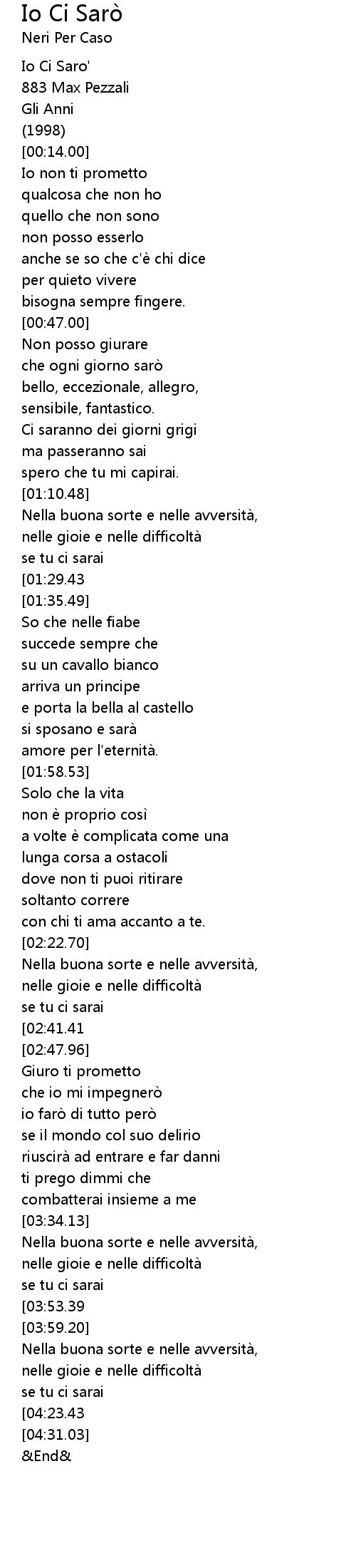 | [04:26.52][04:23.43][04:20.52][04:17.47] | io ci sarò |