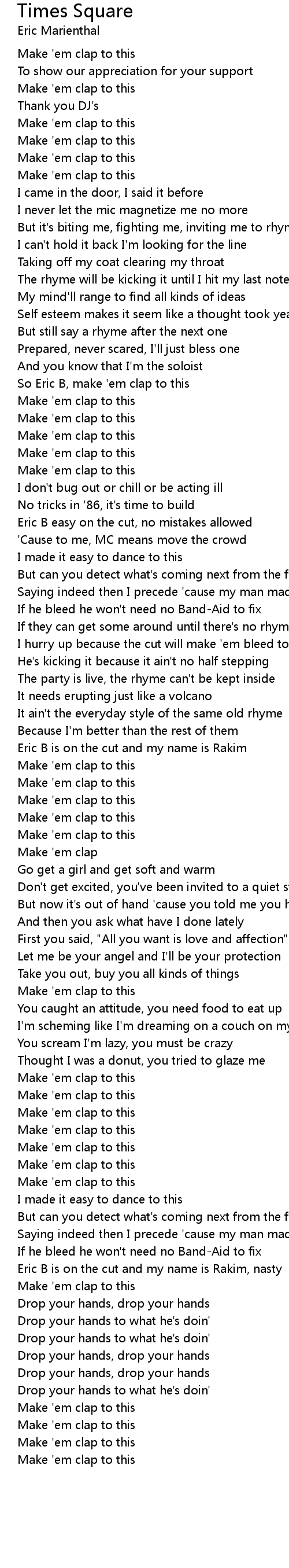 So Eric B, make 'em clap to this |