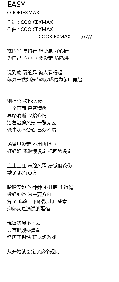 | 作词 : COOKIEXMAX | |