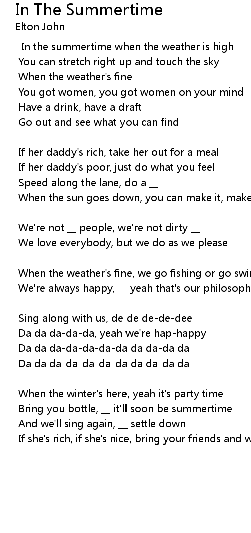 In the summertime when the weather is high |