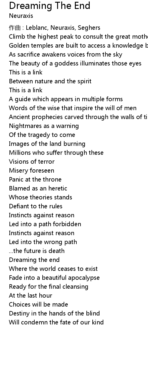 | Dreaming the end | |