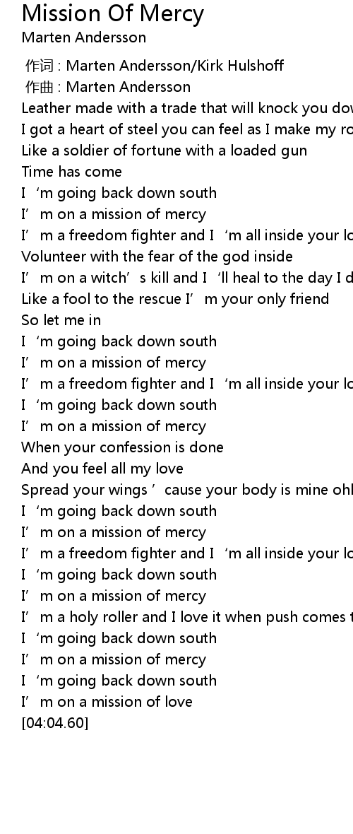 | [00:00.000] | 作词 : Marten Andersson/Kirk Hulshoff |
