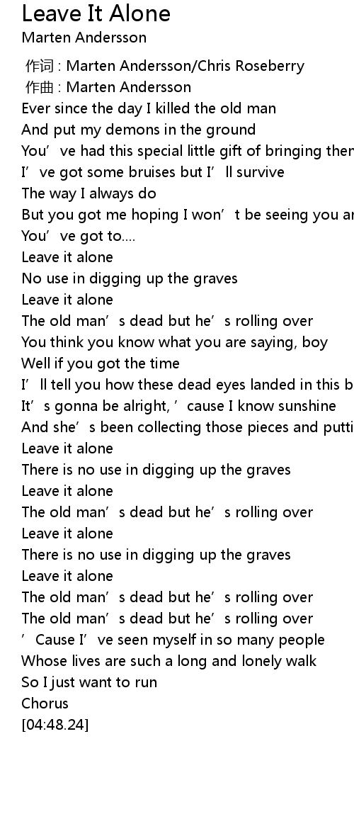 | [00:57.50] | Leave it alone |