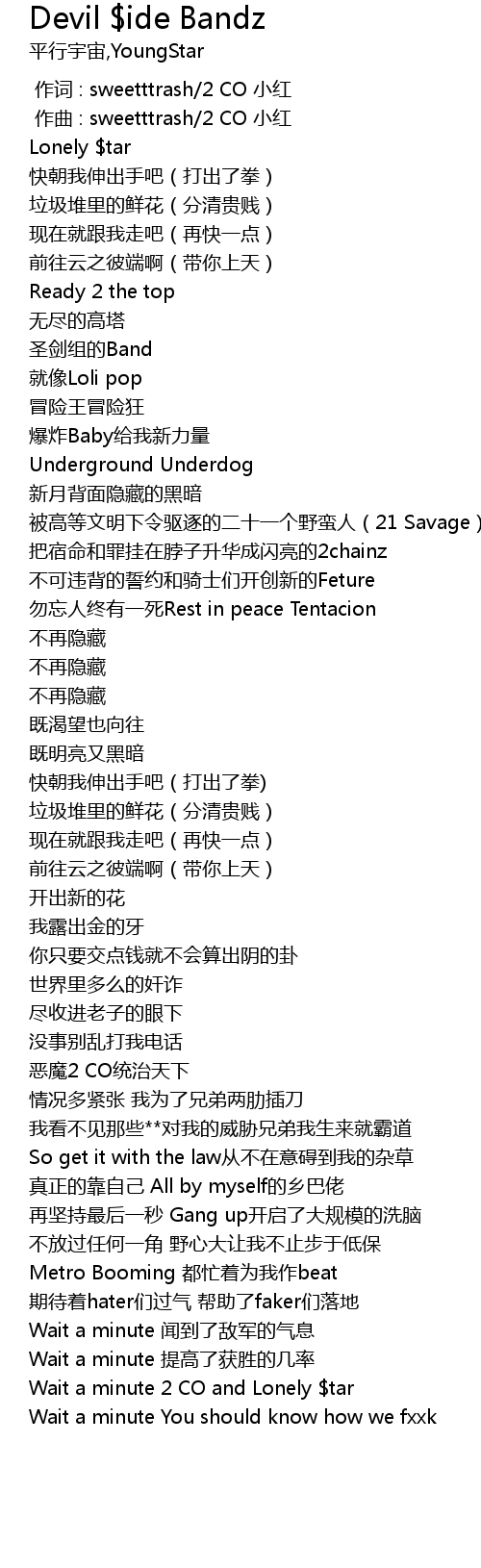 | [00:00.000] | 作词 : sweetttrash/2 CO 小红 |