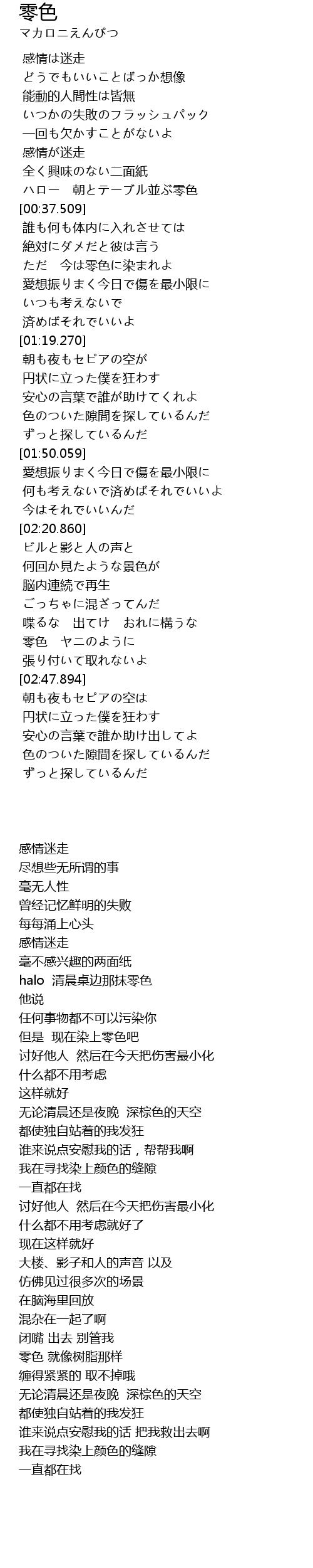 | [02:40.929] | 零色 ヤニのように |