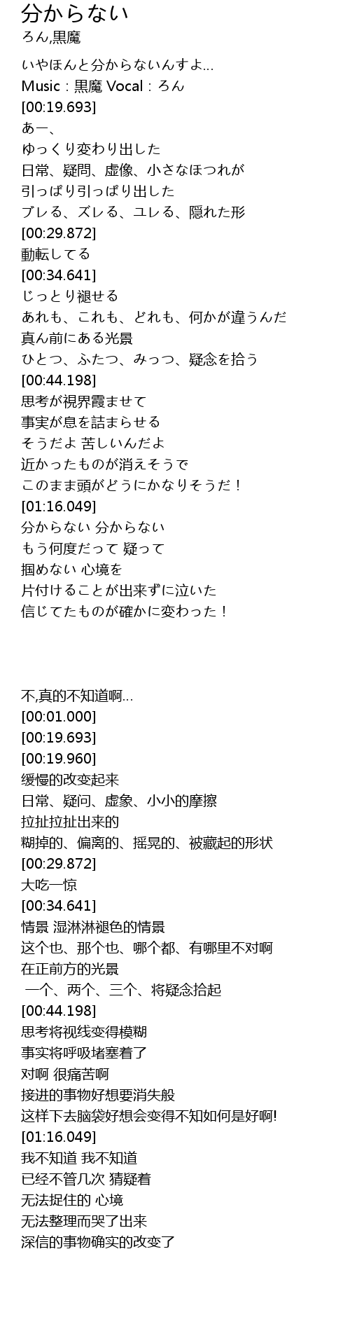 | [01:16.417] | 分からない 分からない |