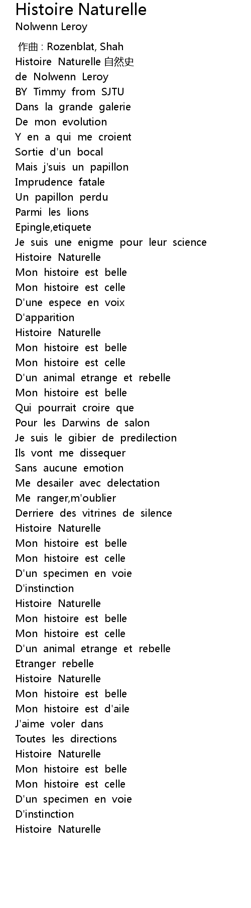 | [02:35.87] | Histoire Naturelle |