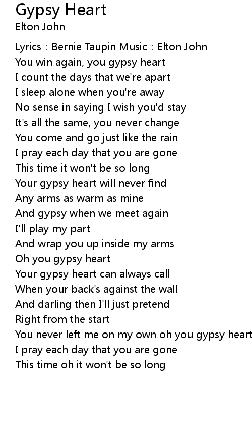 | You never left me on my own oh you gypsy heart | |