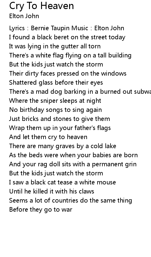 | Lyrics: Bernie Taupin Music: Elton John | |