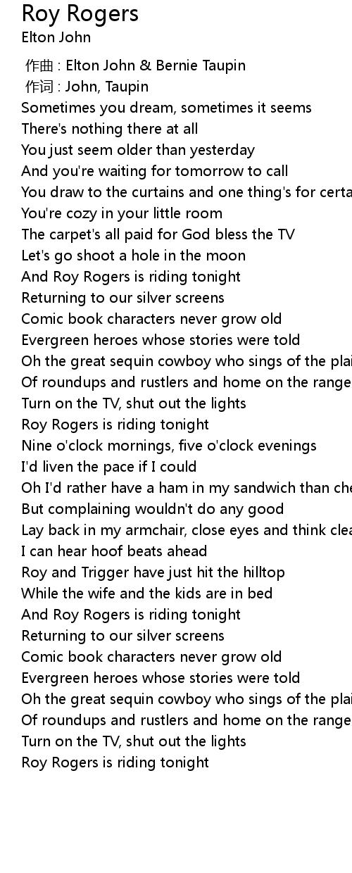 | [00:59.51] | And Roy Rogers is riding tonight |
