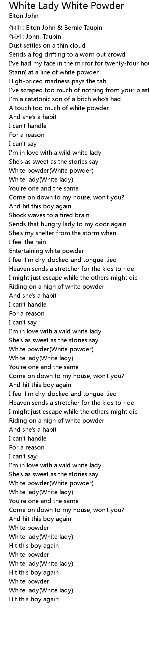 | Song | White Lady White Powder |