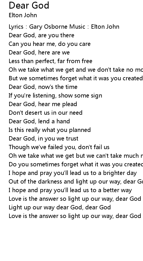 | Song | Dear God |