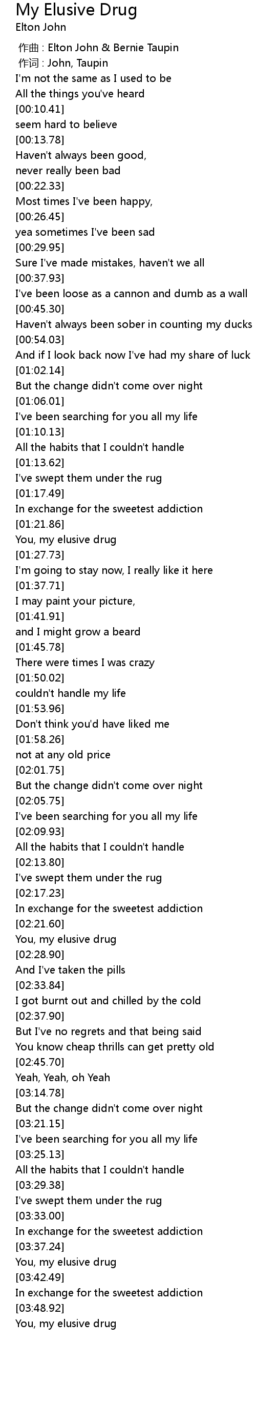 | [00:00.00] | zuo qu : Elton John Bernie Taupin |