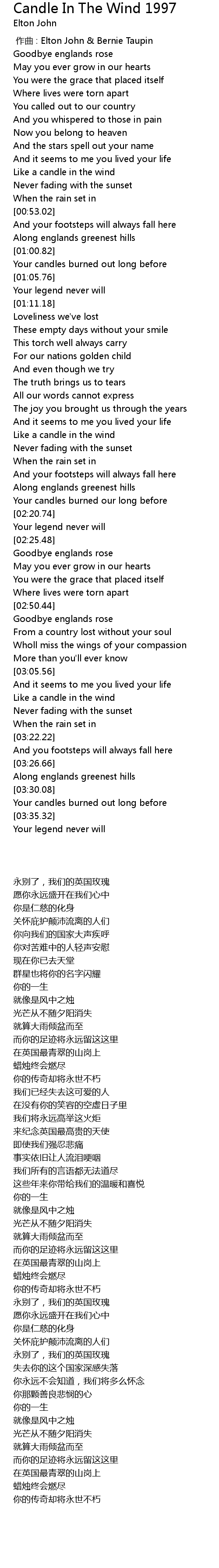 | [00:00.00] | 作曲 : Elton John & Bernie Taupin |