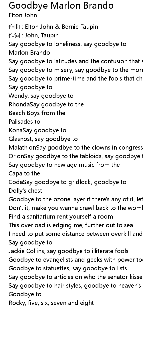 | Song | Goodbye Marlon Brando |