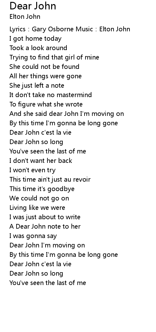 | Song | Dear John |