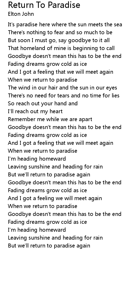 But we'll return to paradise again |