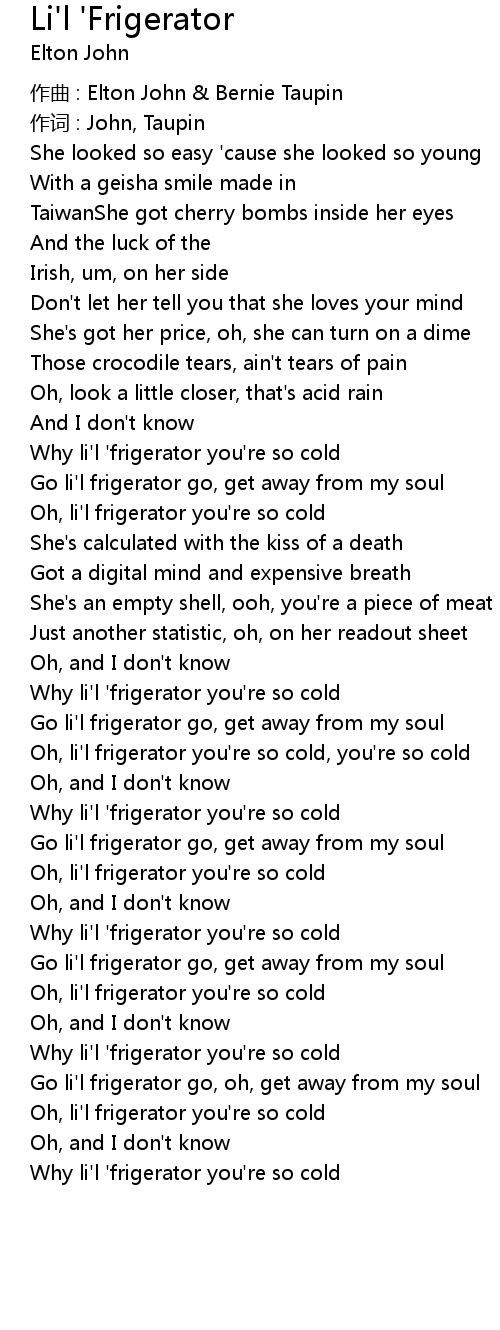 | Why li' l ' frigerator you' re so cold | |