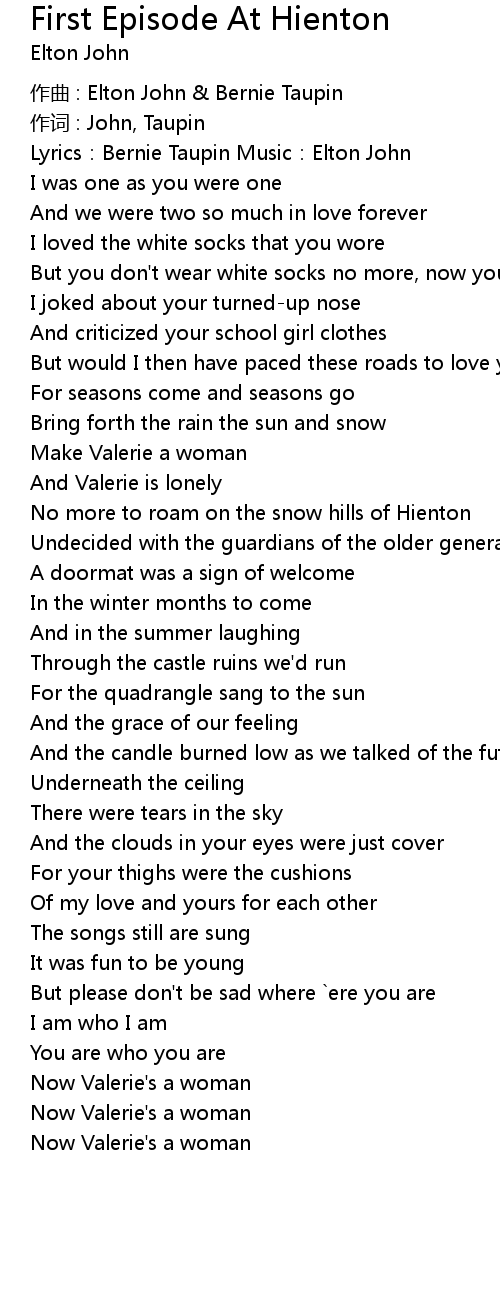 | Lyrics: Bernie Taupin Music: Elton John | |
