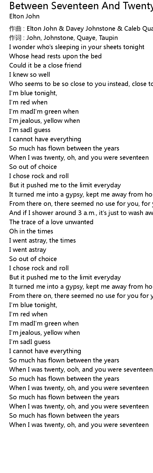 | When I was twenty, ooh, and you were seventeen | |