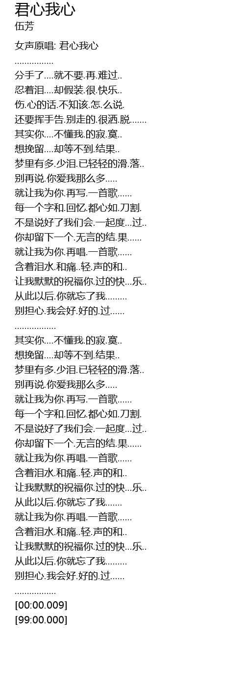 | [00:05.00] | nǚ shēng yuán chàng: jūn xīn wǒ xīn |