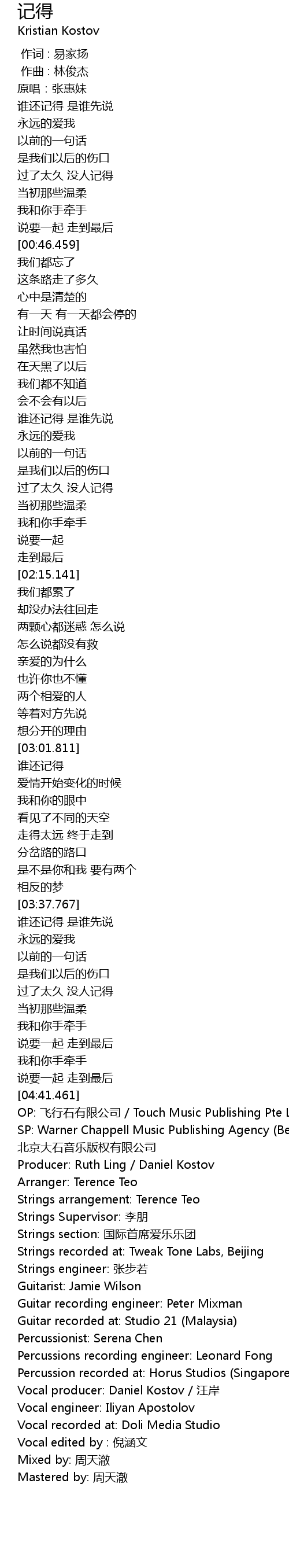 | [04:47.034] | Vocal producer: Daniel Kostov / 汪岸 |