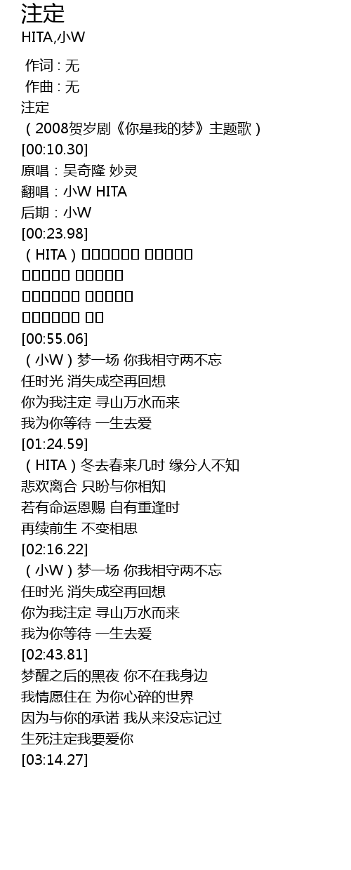 | [02:16.53] | (小W)梦一场 你我相守两不忘 |