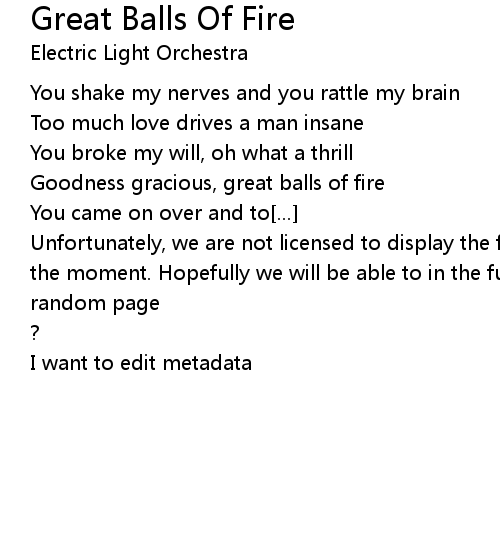 | Goodness gracious, great balls of fire | |