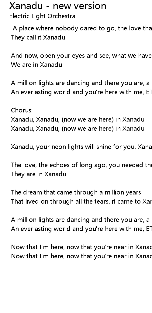 Xanadu, Xanadu, (now we are here) in Xanadu |